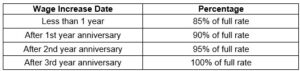 For those moving through the scales with less than three years’ experience, their wage increases would follow this schedule: